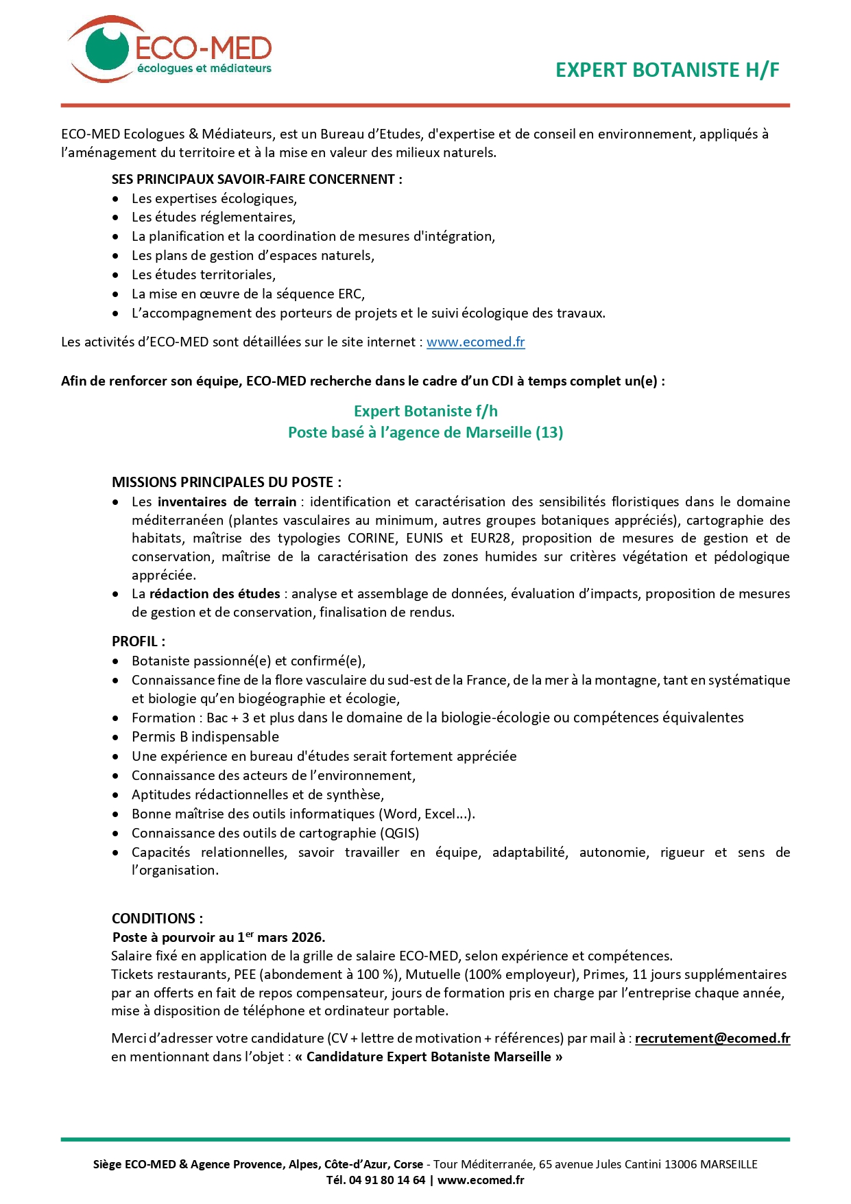 EXPERT BOTANISTE – CDI – F/H – Poste basé à Marseille (13)